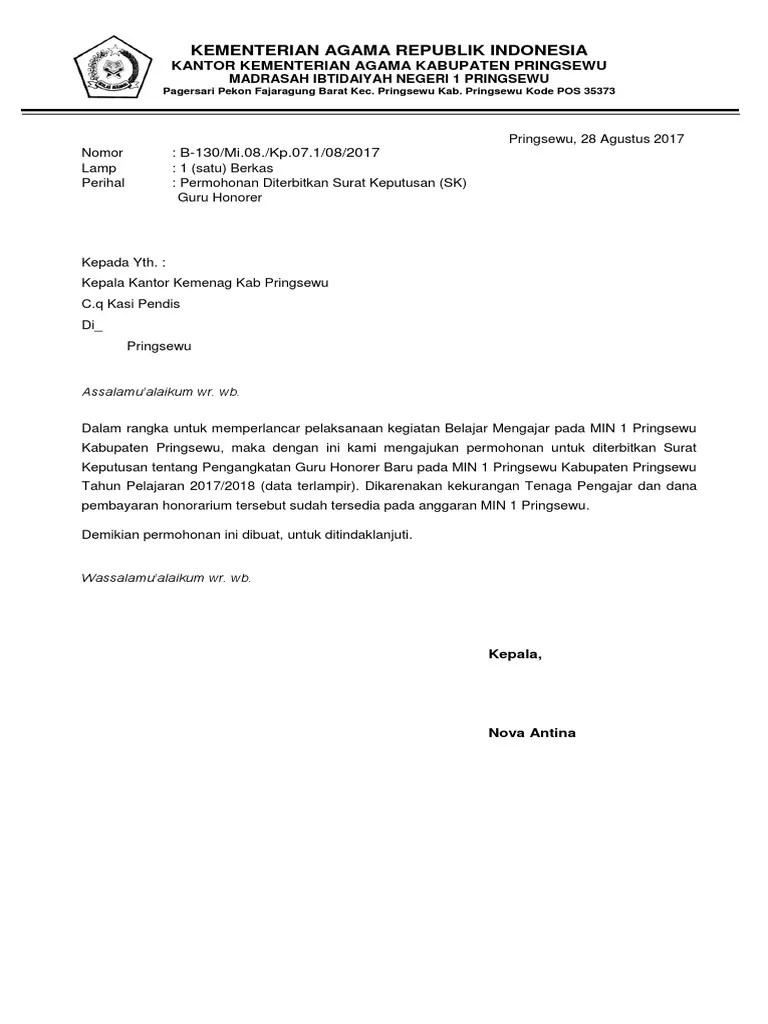 Contoh surat permohonan guru ganti.